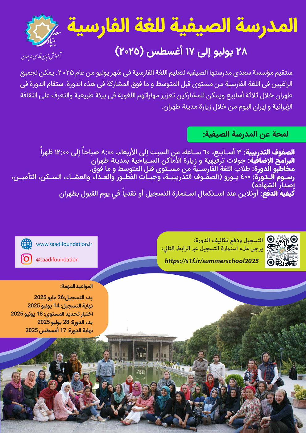 ستقیم موسسة سعدی مدرستها الصیفیة لتعلیم اللغة الفارسیة فی شهر یولیو من عام 2025.
