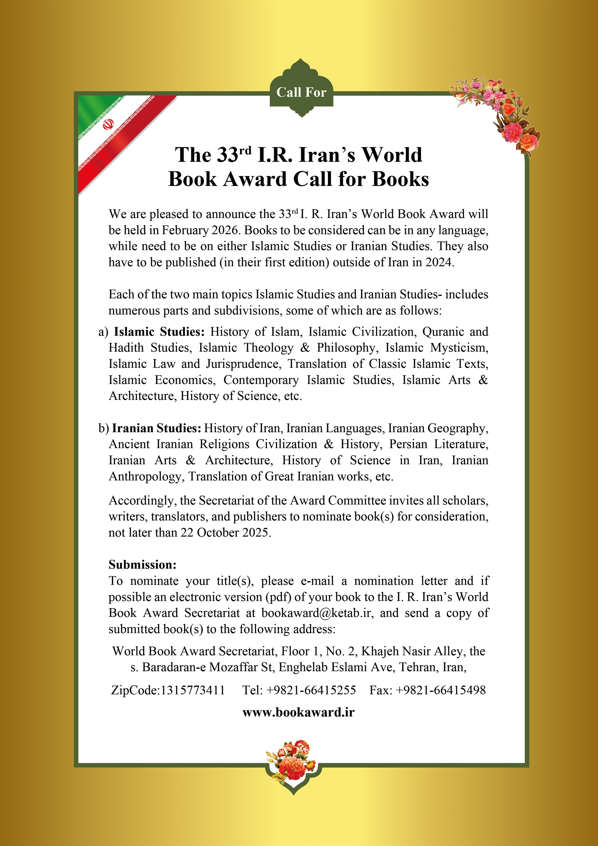 The 33 rd I.I.Iran’s World Book Award Call for Books